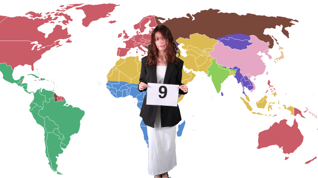 Kategorie pytań (3 z geografii świata, 3 z historii sztuki, 3 z historii powszechnej):